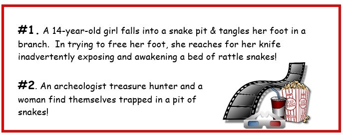 Having a close encounter with a snake would cause most of us to react like these movie characters. We freeze in fear as our imagination runs wild worrying about what the snake could do to us!