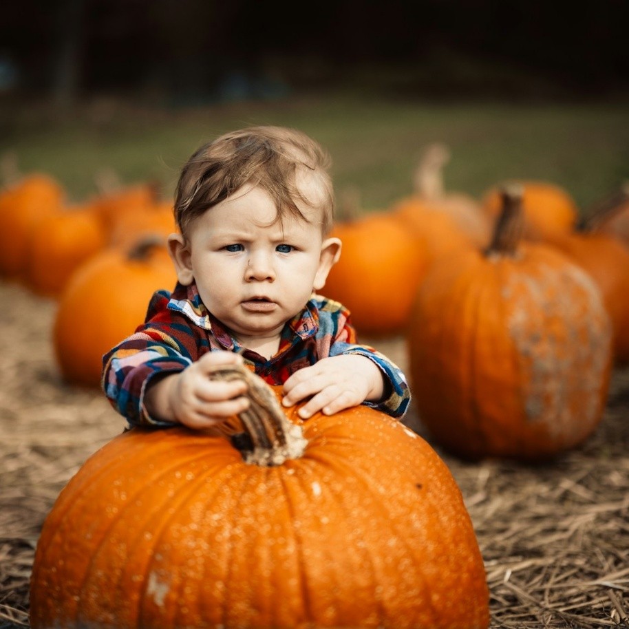 It’s the stem’s connection to the vine that transports nutrients, sugar and water to the pumpkin. This enables the plant to grow strong and withstand the changing environment. Let’s choose an orange Sugar Pie pumpkin with a firm, dry, stem which indicates that it’s sweet, mature and ripe.